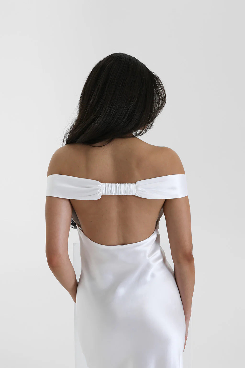 Turn every moment into a statement in the Bridget Gown. Designed with an off-shoulder neckline, delicate ruching, and a luxurious satin finish, this gown hugs your figure in all the right places. Whether you’re attending a wedding, formal event, or special night out, the Bridget Gown delivers effortless sophistication and a touch of old-Hollywood glamour.