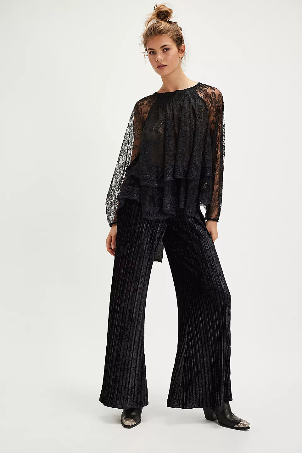 The Goldie Knit Top blends romance and comfort in the most effortless way. Featuring sheer floral lace, soft off-the-shoulder sleeves, and delicate bow-tie details down the back, it’s the kind of piece that feels vintage but totally wearable. Pair it with denim for a laid-back look with just enough drama, or layer it for something a little sweeter.