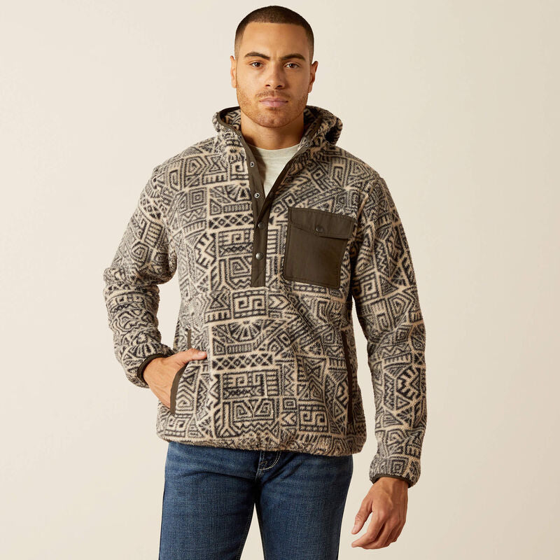 Stay warm and stylish this season with our Polar Fleece Hoodie. Designed for the adventurous spirit, this hoodie features a unique tribal print, a cozy fleece material, and a handy front pocket for essentials. Perfect for crisp mornings or cool evenings, it's your go-to for any casual outing or wilderness adventure. Experience warmth without the weightβ€”discover the great outdoors with comfort and style.